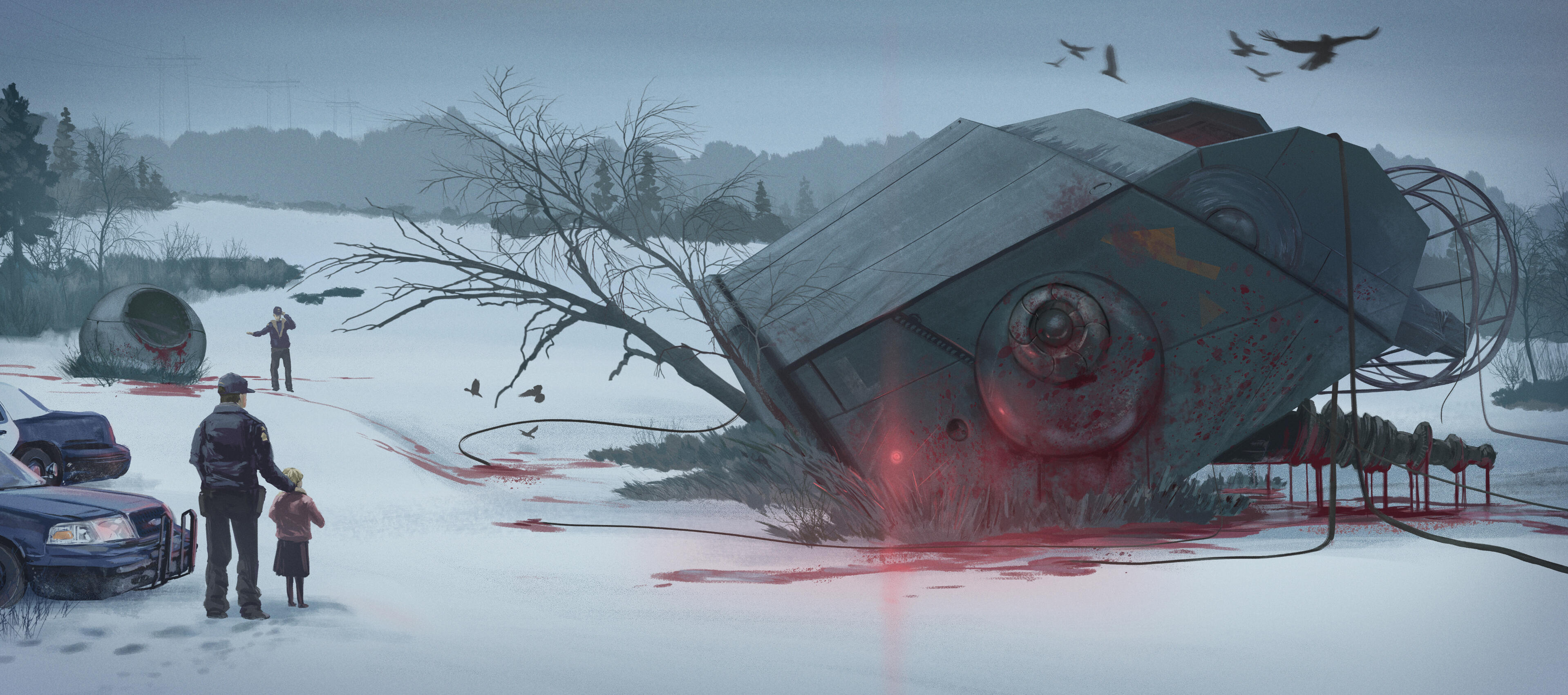 Alien Crash was a test for a canceled project with a Simon Stalenhag style. (posted with permission)
