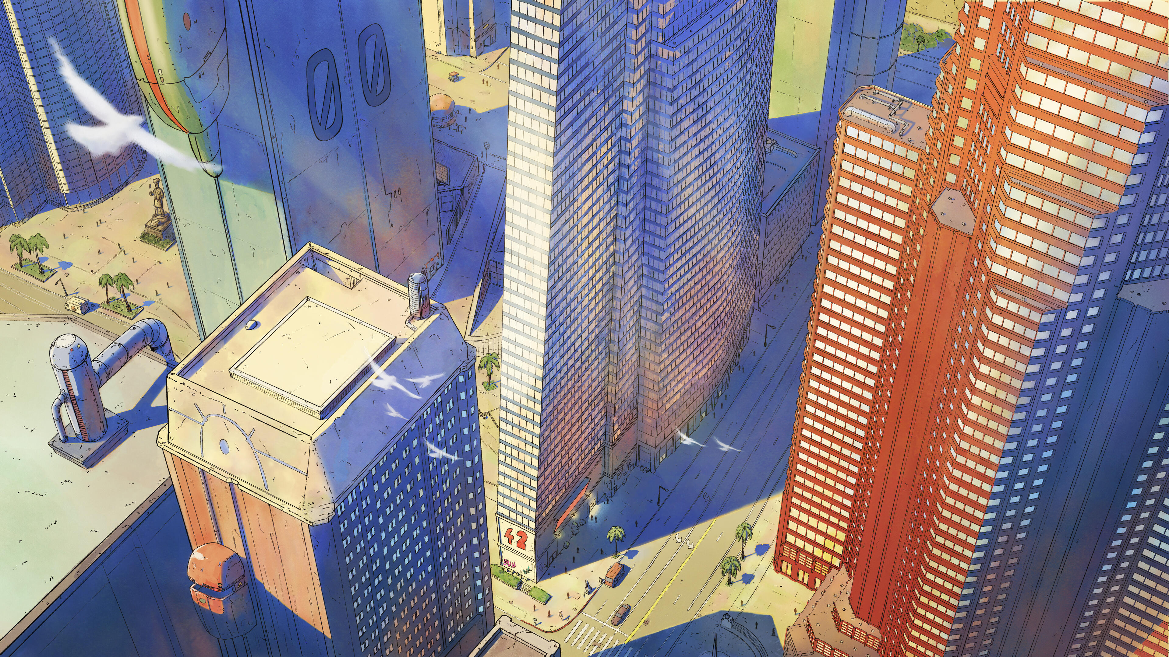 Future City was an unofficial test that called for a Jean Giraud "Mobius" look in a futuristic LA. I love the mobius look, I love watercolors, and I love LA, so this just screamed fun. I even took the train to downtown LA and shot a lot of reference images.