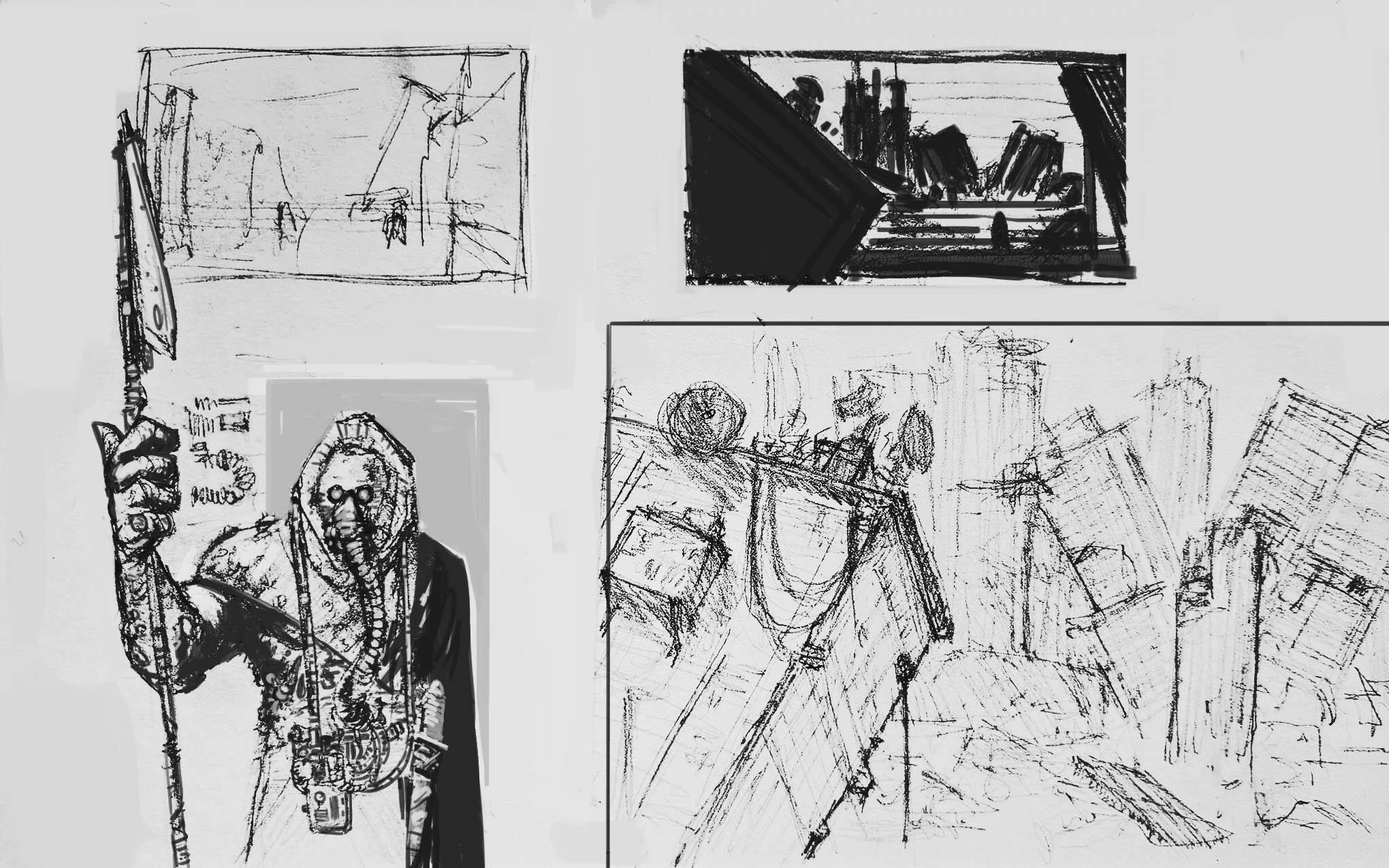 Below is thumbnails various of scenes and sketches. Also the Zoo of death scene where Westley is "almost dead" by the machine.