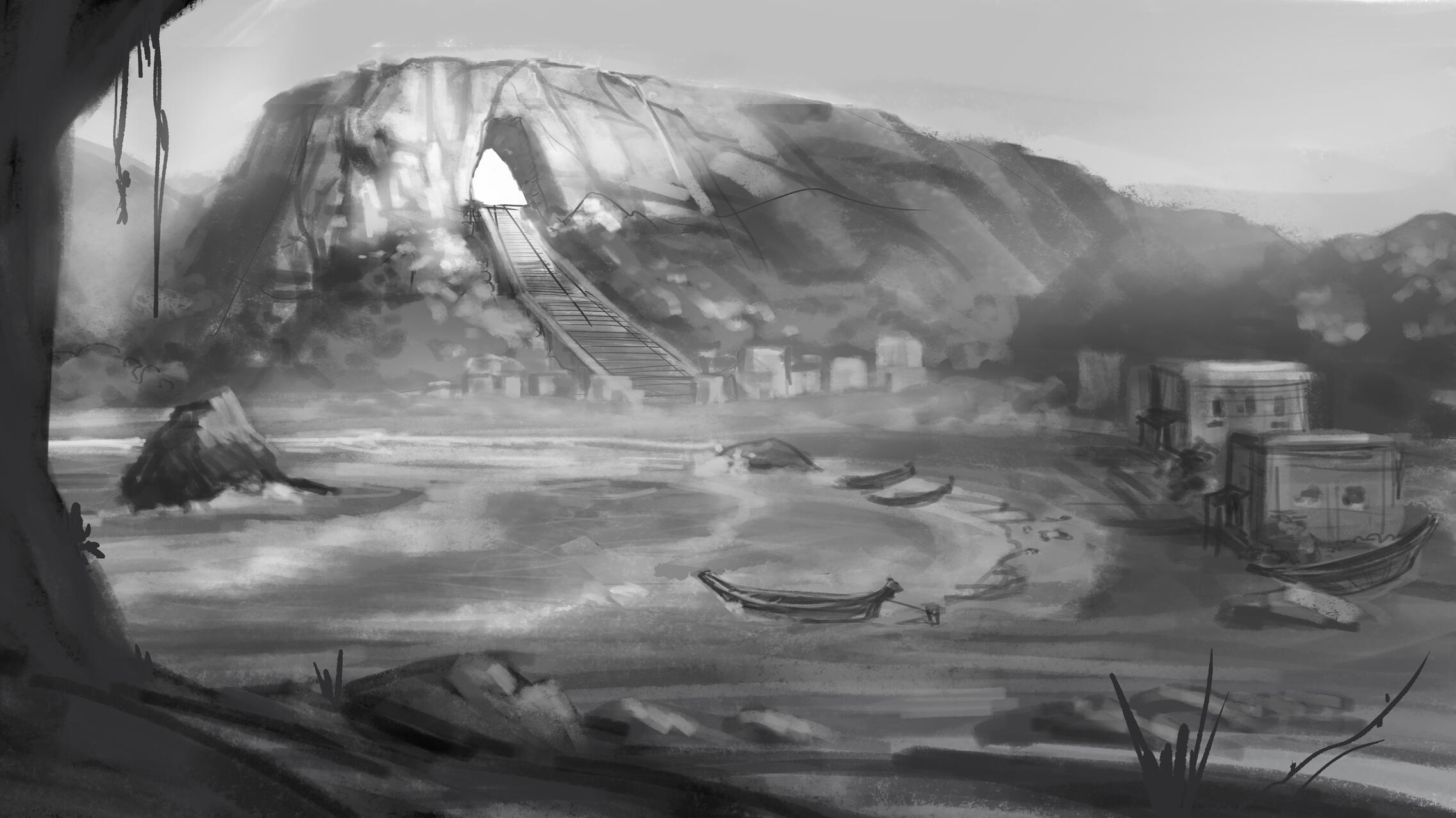 This is a Background paint project using a 3D / 2D workflow. The scene is meant to invoke a feeling of exploration with sense of caution.